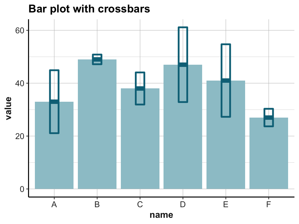 geom_crossbar(aes(x = name, y = value, ymin = value - sd, ymax = value + sd),