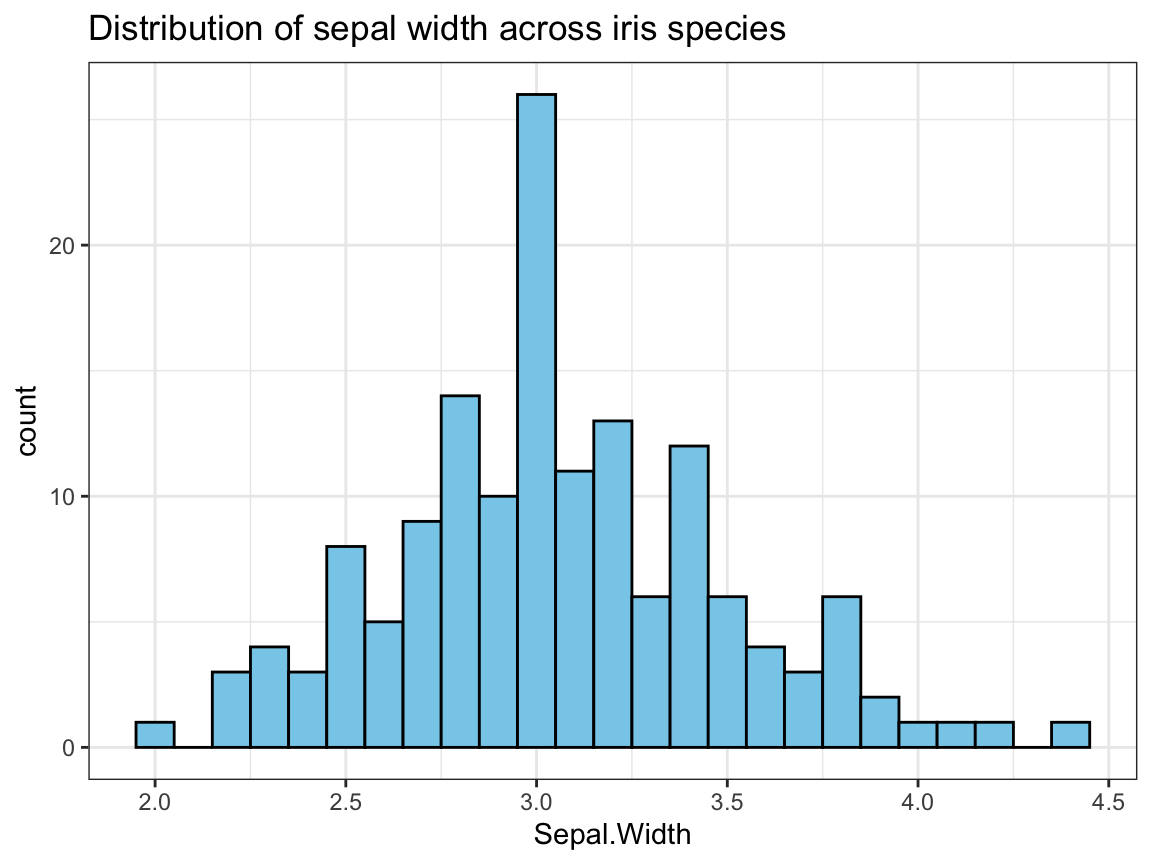 labs(title = "Distribution of sepal width across iris species") +