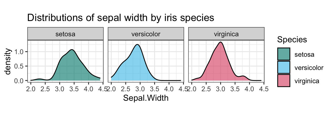 labs(title = "Distributions of sepal width by iris species") +