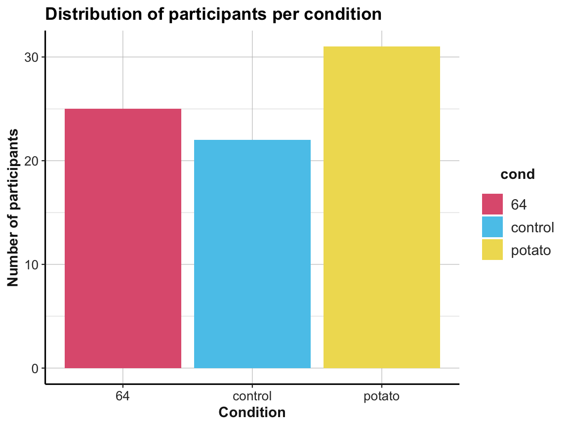 labs(title = "Distribution of participants per condition",