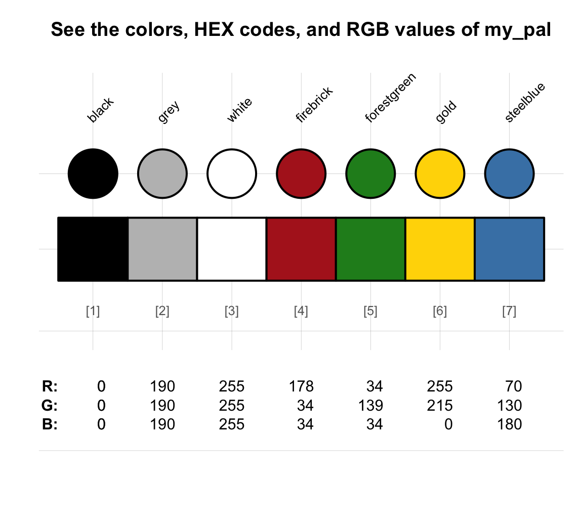 col_names <- c("black", "grey", "white", "firebrick", "forestgreen", "gold", "steelblue")