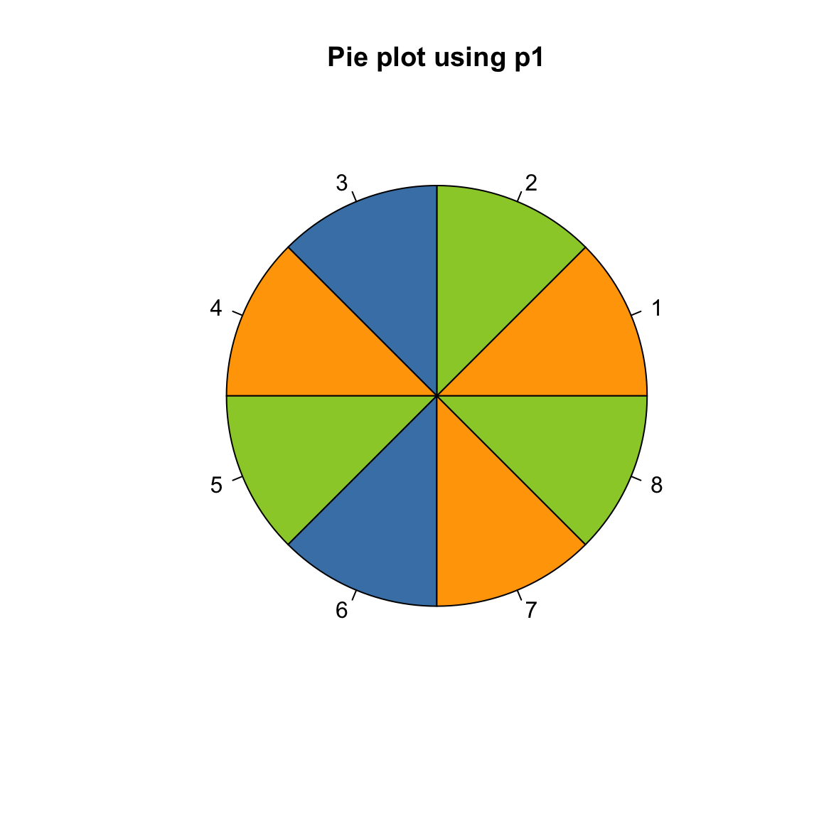 pie(rep(1, 8), col = p1, main = "Pie plot using p1")